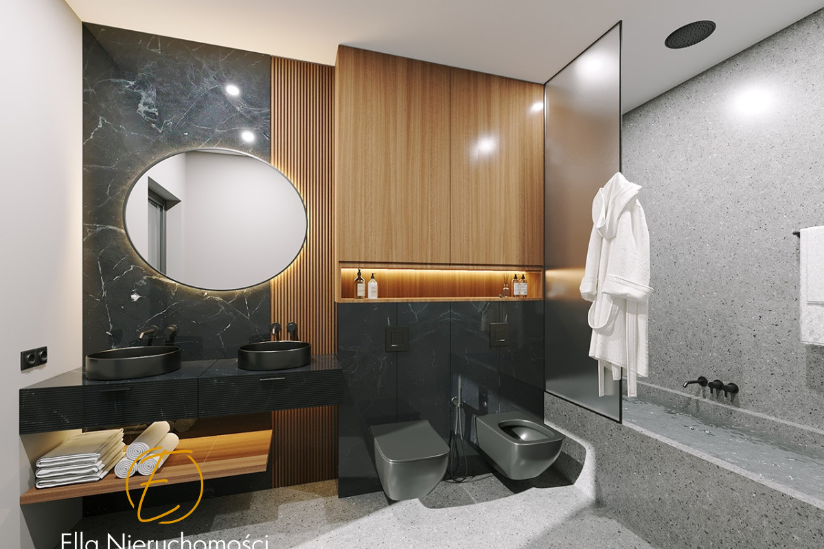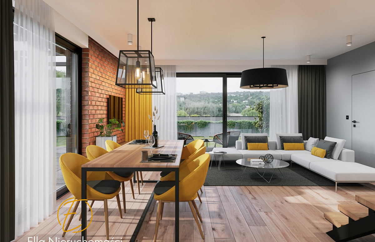 Zalety inwestycji:ogród z widokiem na góry i pola, przestronny salon z aneksem kuchennym, duże pomieszczenie gospodarcze - garderoba, na piętrze wydzielona pralnia i przestronne 4 sypialnie.