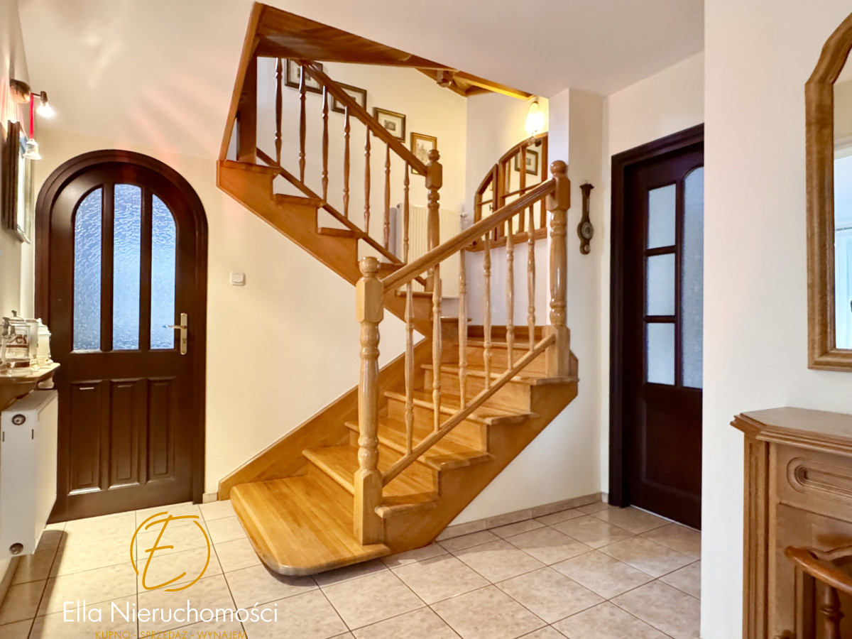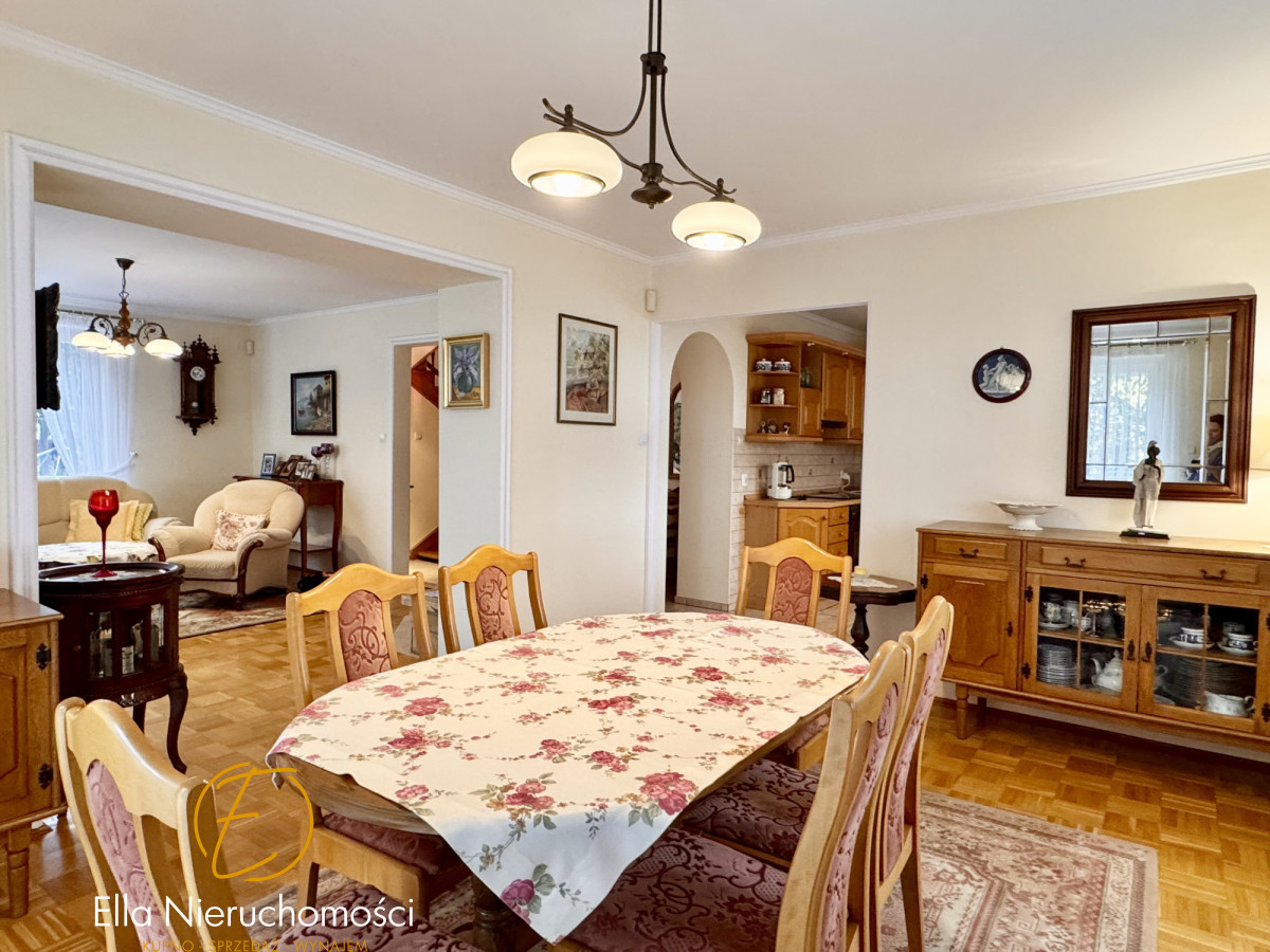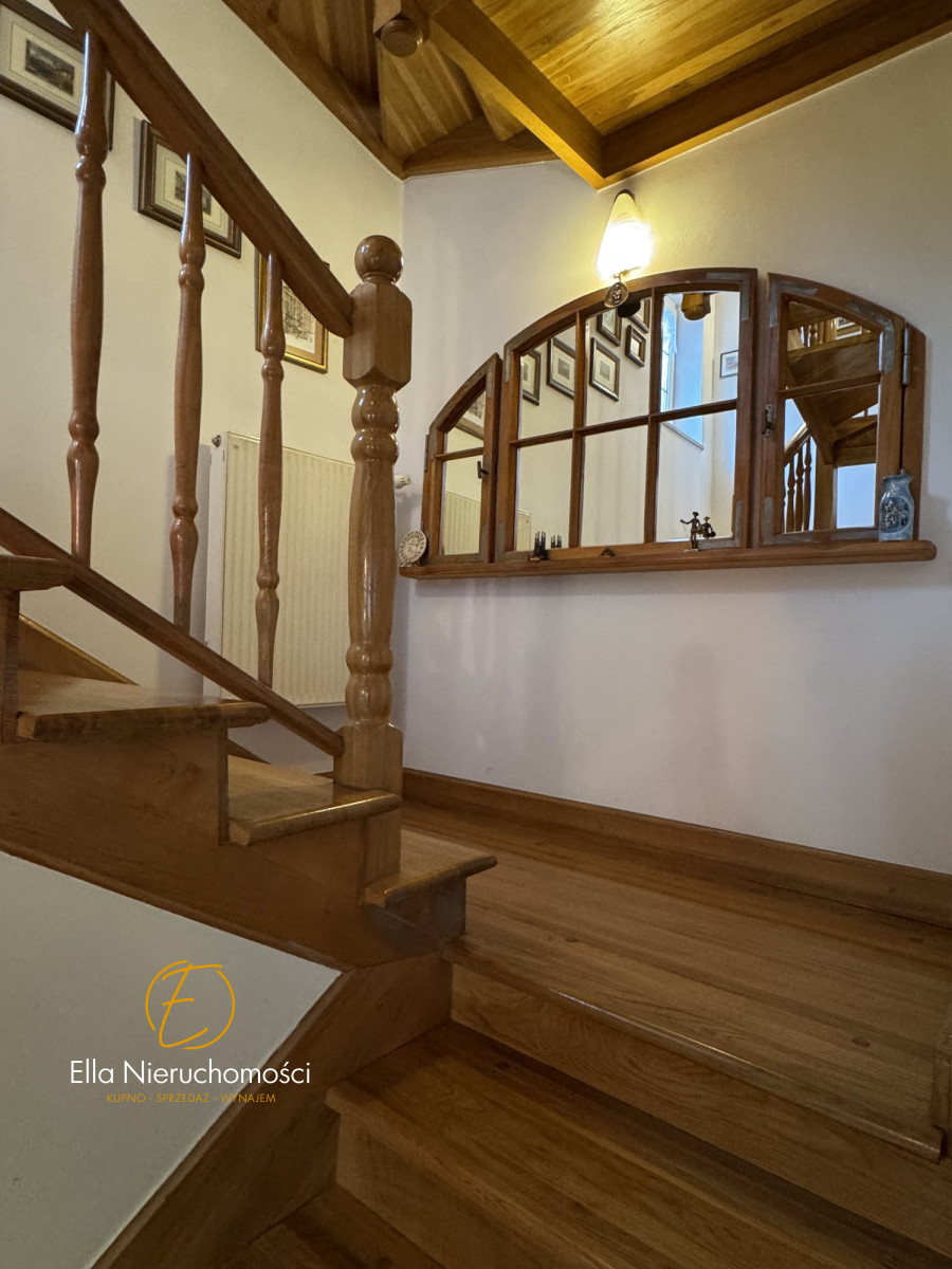 Specyfikacja nieruchomości: Dom wybudowany w latach 70-tych, przeszedł generalną przebudowę w 2000 roku, podpiwniczony. Wymienione wszystkie instalacje, dobudowane piętro, założone rolety zewnętrzne, ocieplona elewacja. Metoda budowy: pustak. Dachówka ceramiczna.W domu ogrzewanie gazowe ( piec dwufunkcyjny firmy Viessman) oraz klimatyzacja w salonie i sypialni. Stolarka okienna i tarasowa PCV. Dom wykończony w wysokim standardzie. Na podłogach drewniany parkiet. Schody drewniane. W kuchni oraz łazience ogrzewanie podłogowe elektryczne. Stolarka drzwiowa w całym domu drewniana. Właściciele zadbali o wszystkie szczegóły. Dom zachowany w stylu klasycznym.