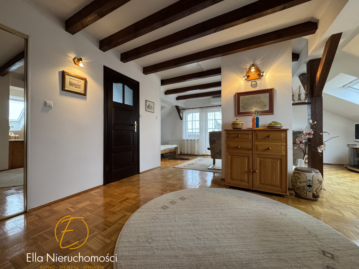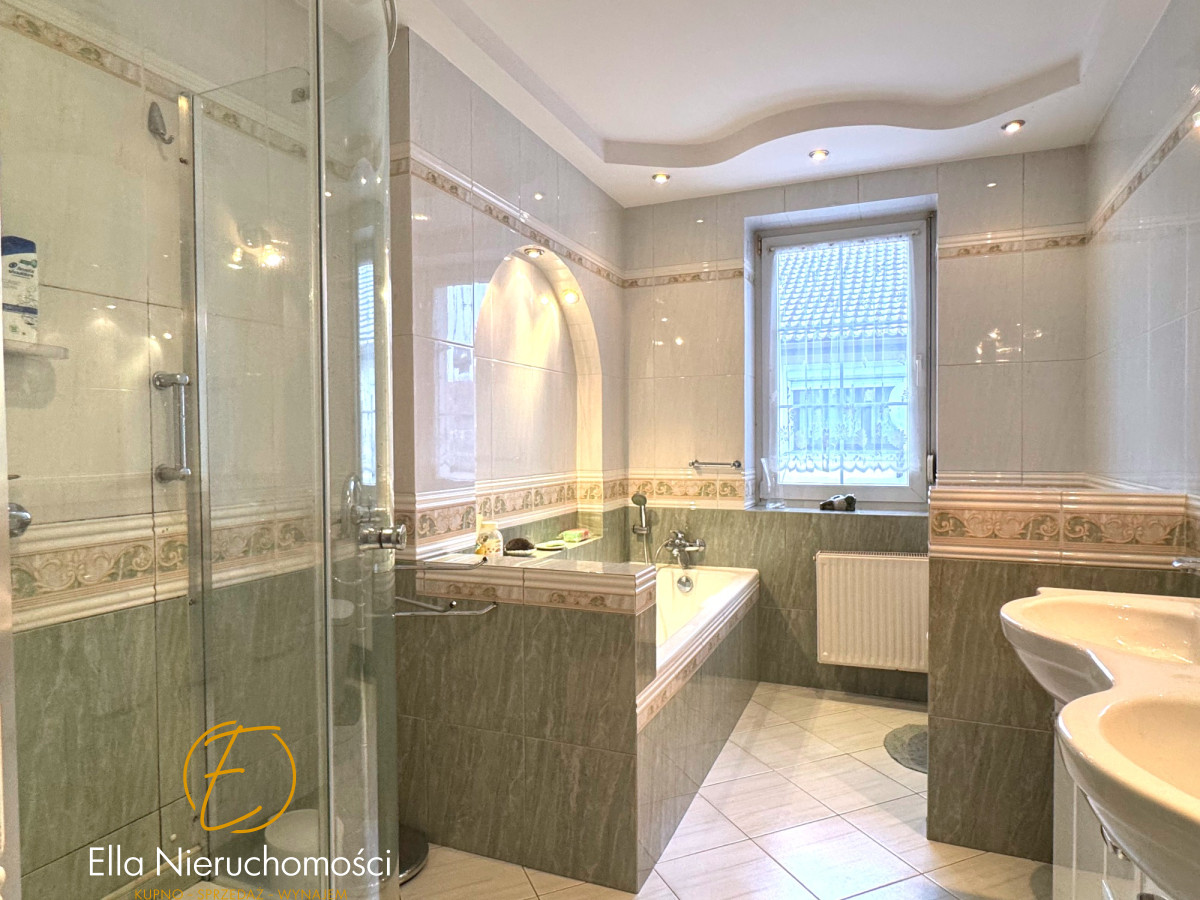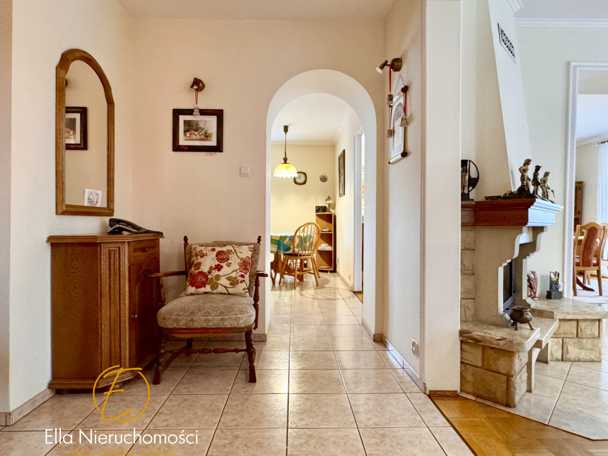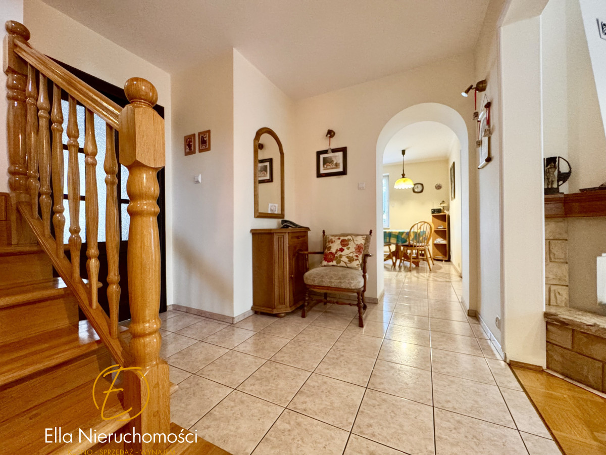 Specyfikacja nieruchomości: Dom wybudowany w latach 70-tych, przeszedł generalną przebudowę w 2000 roku, podpiwniczony. Wymienione wszystkie instalacje, dobudowane piętro, założone rolety zewnętrzne, ocieplona elewacja. Metoda budowy: pustak. Dachówka ceramiczna.W domu ogrzewanie gazowe ( piec dwufunkcyjny firmy Viessman) oraz klimatyzacja w salonie i sypialni. Stolarka okienna i tarasowa PCV. Dom wykończony w wysokim standardzie. Na podłogach drewniany parkiet. Schody drewniane. W kuchni oraz łazience ogrzewanie podłogowe elektryczne. Stolarka drzwiowa w całym domu drewniana. Właściciele zadbali o wszystkie szczegóły. Dom zachowany w stylu klasycznym.