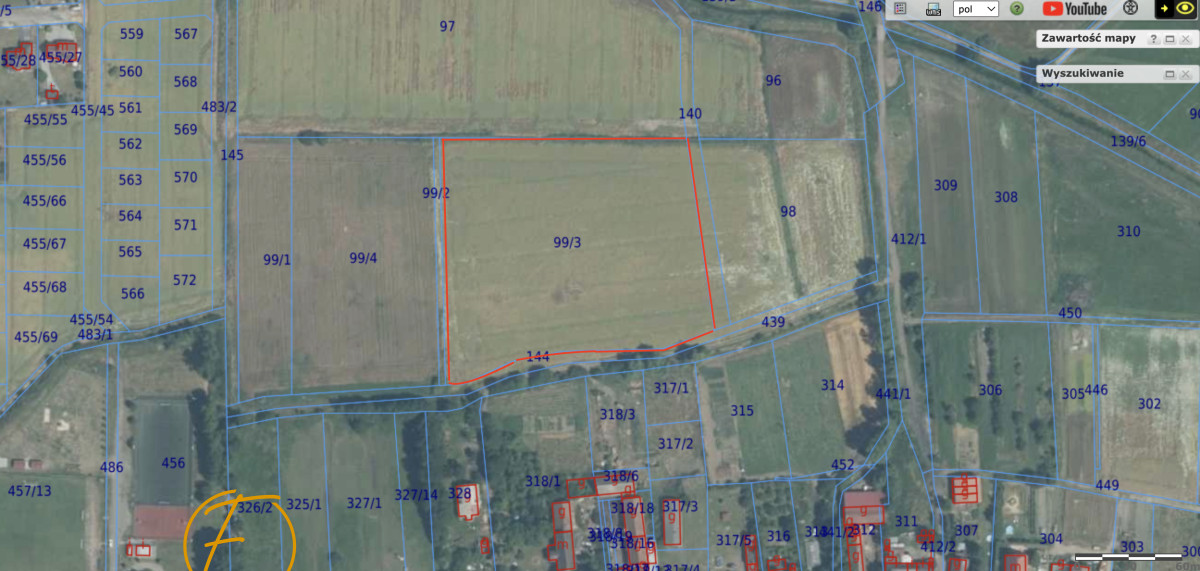 działka nr 99/3 o pow. 1,92 Ha na której składają się symbole:
