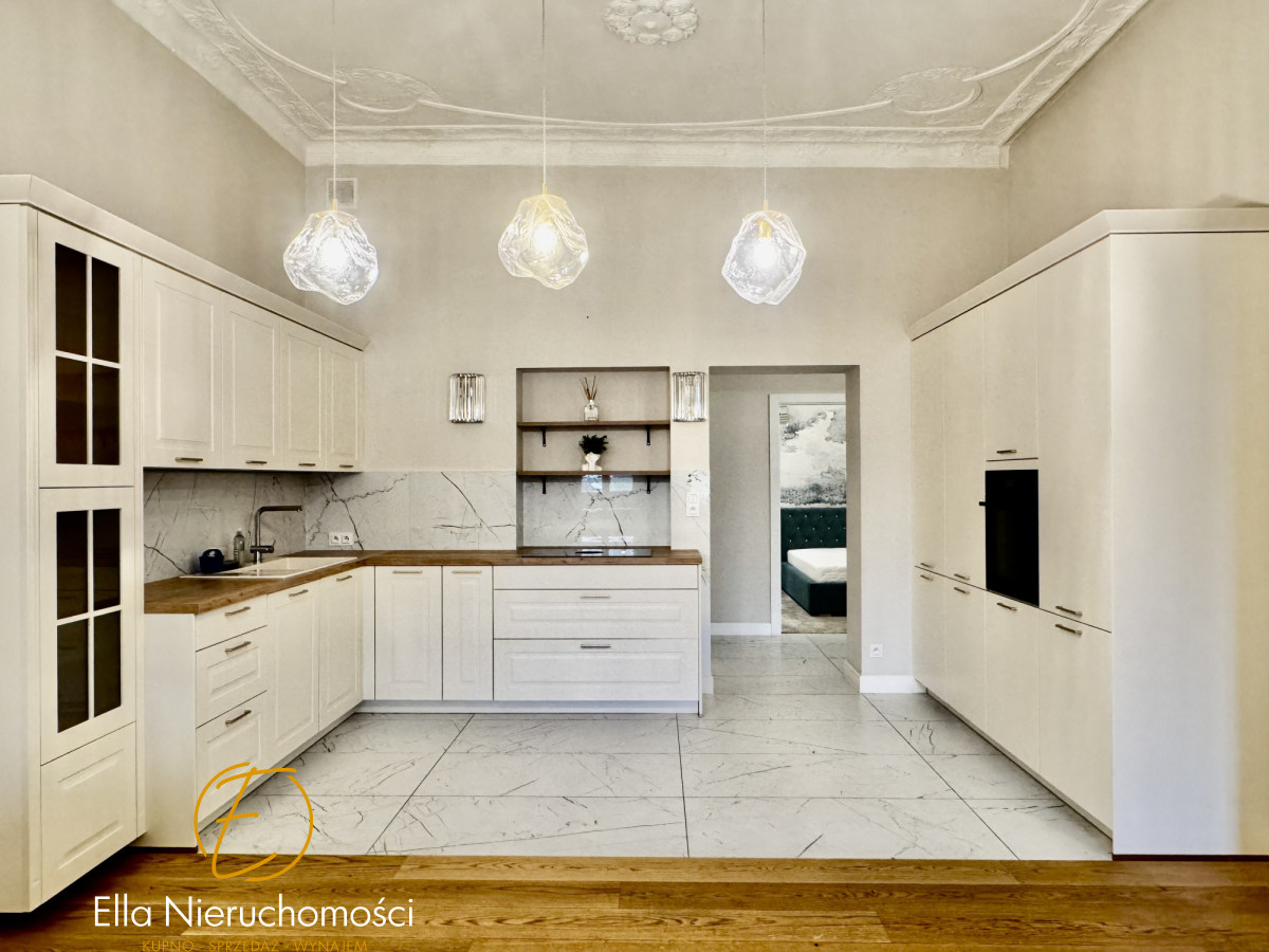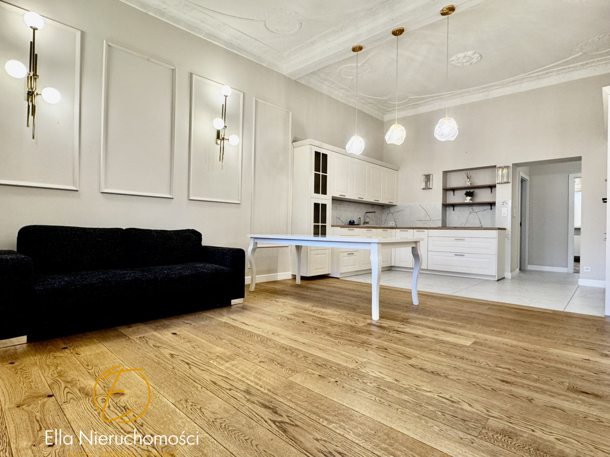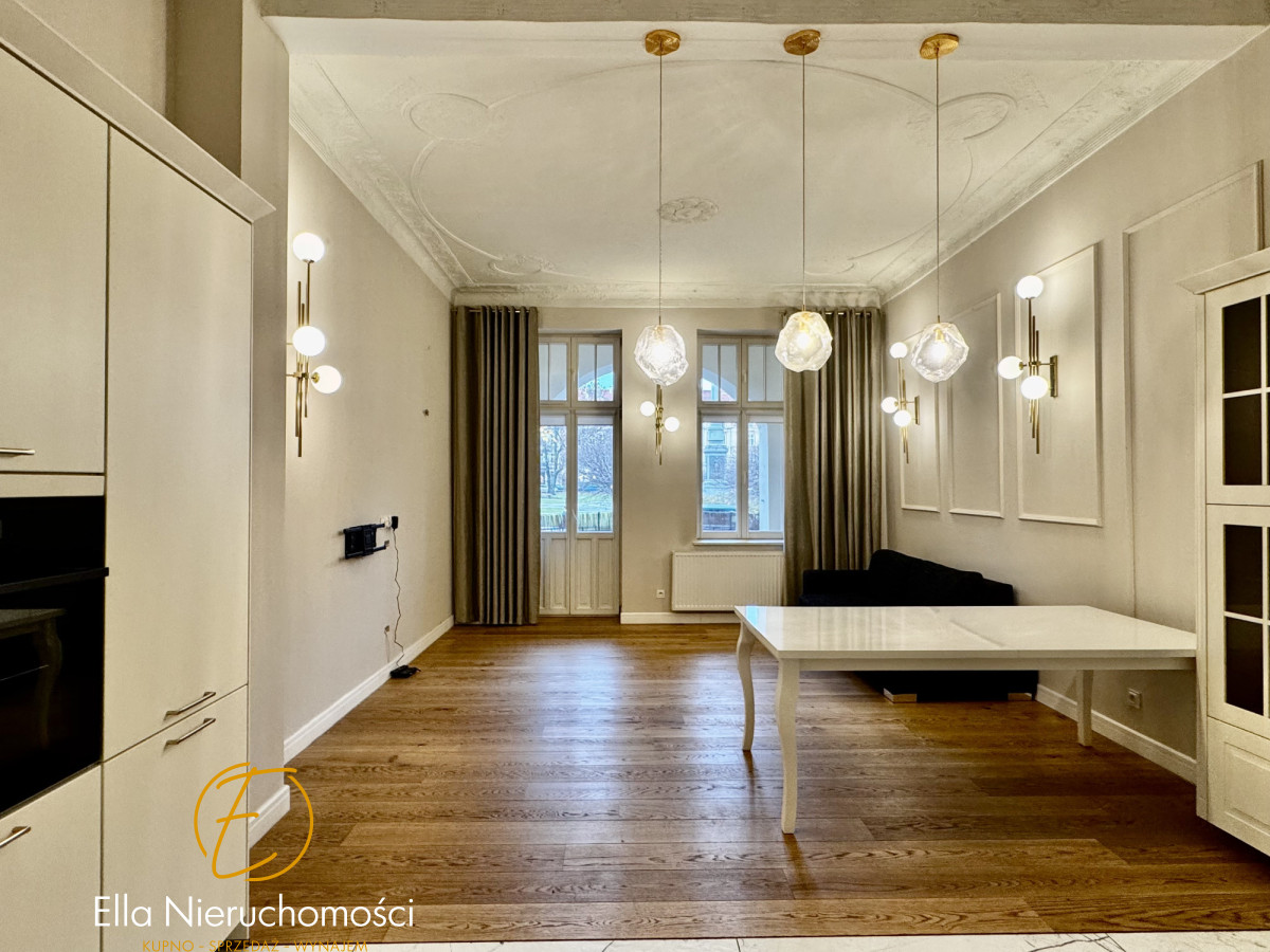 Nieruchomość przeszła całkowitą renowację. Wymienione wszystkie instalacje. Drewniana stolarka drzwiowa. Na sufitach piękne oryginalne sztukaterie. Wykonawca zadbał o zachowanie jak najwięcej oryginalnych szczegółów. Mamy tutaj połączony klimat dawnej kamienicy z nowoczesnością. W salonie podłoga drewniana, w kuchni wysokiej klasy sprzęty.
